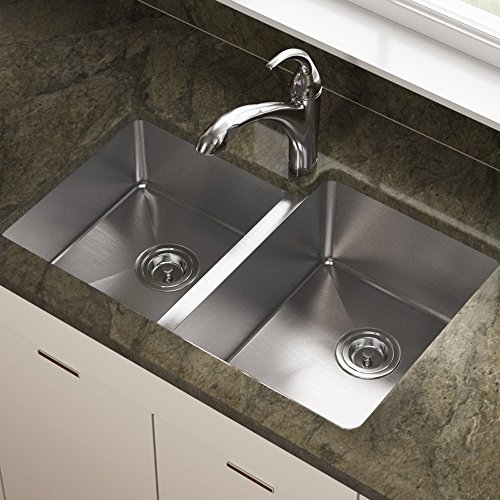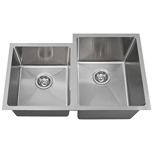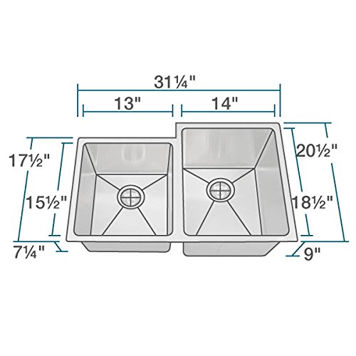 CONTEMPORARY STYLING -- Subtle ¾” radius corners provide extra sink space and a soft appearance in this unequal, double-bowl beauty with one bowl shorter to allow for offset faucet placement