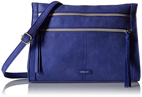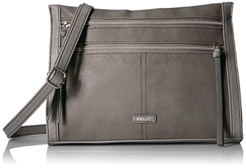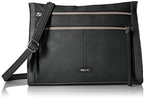 The Relic Kerrington Crossbody bag looks fresh for fall with a patchwork pattern, exposed zipper pockets, silver-tone hardware, and an adjustable crossbody strap.