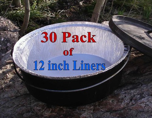 Disposable Foil Liners, 30 Pack 12" 6 Quart. Fits most 12 inch ovens, Lodge, Camp Chef etc.