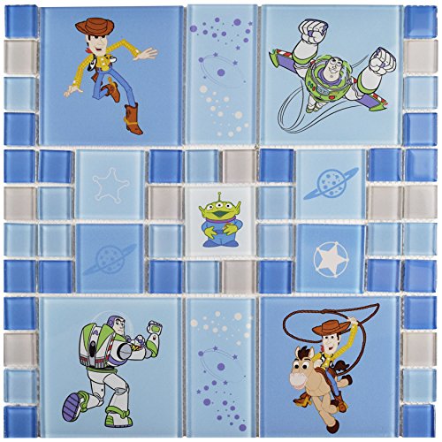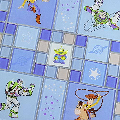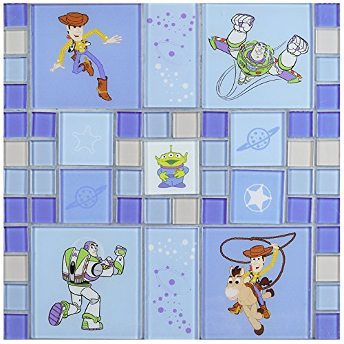 SomerTile WDSTOY10 Disney Toy Story Blue Glass Mosaic Wall Tile, 11.75" x 11.75", 11 Piece