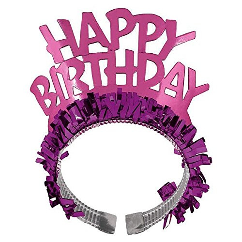 -. Feature : Elegant metallic color design / Silver foil headband with purple fringe and pink "Happy Birthday" letter cutouts / Comes in 1 pc. / Adds to your look a lot of charm