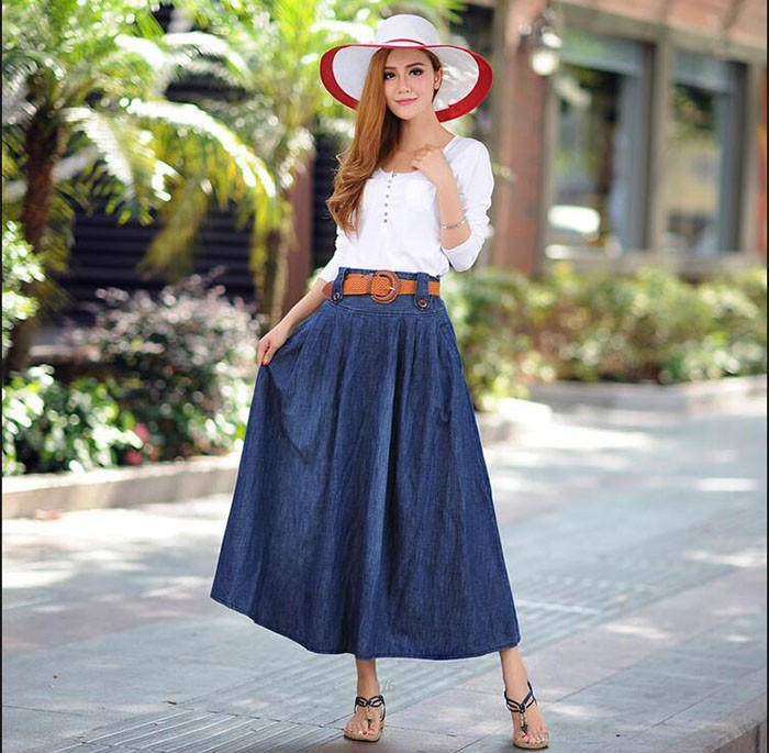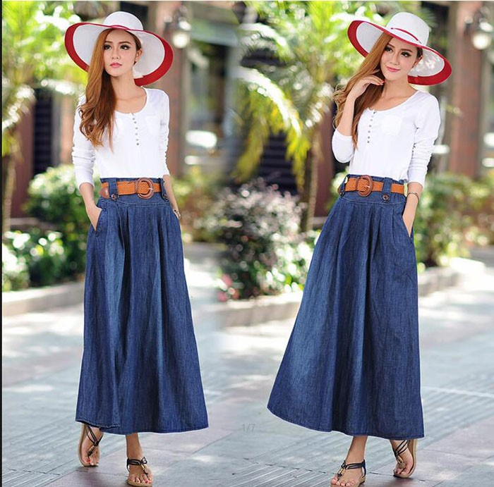 デニムスカート 膝丈 レディース デニムスカート 大きいサイズ ハイウエスト ロングスカート フレア Aライン カジュアル 2018春夏新作 デニムスカート 膝丈 レディース デニムスカート 大きいサイズ商品詳細素材:デニム&その他着丈:ロング季節:春夏秋カラー:ブルー(ボタンあり)、ブルー(ボタンなし)サイズ:S M L XL 2XL 3XL 4XL 5XL 6XL産地:中国サイズ参照表S ウエスト66(伸びる範囲10~20cm) 着丈87cm お勧め体重40~47.5キロ M ウエスト69.5(伸びる範囲10~20cm) 着丈88cm お勧め体重50~55キロ L ウエスト73(伸びる範囲10~20cm) 着丈88cm お勧め体重57.5~62.5キロXL ウエスト76.5(伸びる範囲10~20cm) 着丈89cm お勧め体重65~70キロ2XL ウエスト80(伸びる範囲10~20cm) 着丈89cm お勧め体重70~75キロぐらい3XL ウエスト83.5(伸びる範囲10~20cm) 着丈90cm お勧め体重75キロぐらい4XL ウエスト87(伸びる範囲10~20cm) 着丈90cm お勧め体重75~80キロご注意:個人採寸のため、1~3cmの誤差は正常範囲内となりますが、御了承ください。デニムスカート 膝丈 レディース デニムスカート 大きいサイズ ハイウエスト ロングスカート フレア Aライン カジュアル 2018春夏新作 デニムスカート 膝丈 レディース デニムスカート 大きいサイズ