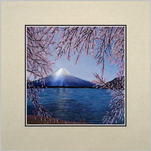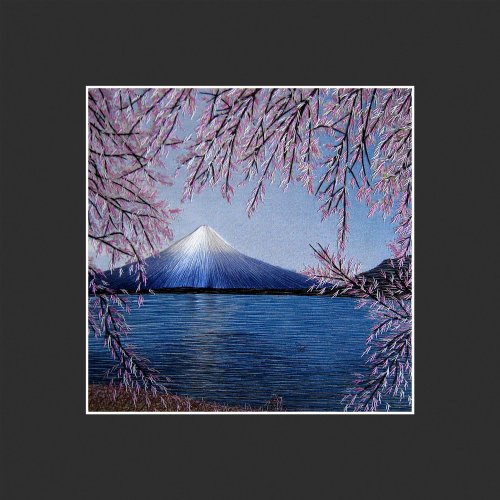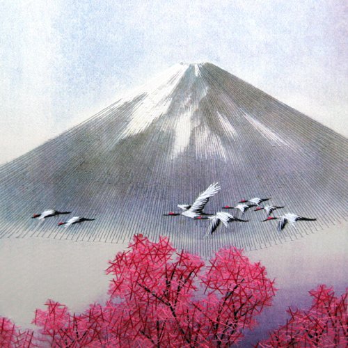 Our eight Emperor Cranes flying over the cherry blossom trees and under Mount Fuji are radiant in luminous silk. In the Chinese myths, cranes lead extraordinarily long lives and Japanese Cranes are especially magical in this regard. These red headed birds are extremely rare and believed to bring a long life and good health to anyone who is lucky enough to spot one. In Chinese symbology, the number eight represents wealth, prosperity and good fortune. Eight cranes in a group are frequent subjects for Chinese artists.