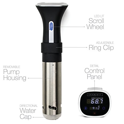 - GOURMET FOODIE COMMUNITY: When you purchase the Gramercy Kitchen Company Immersion Circulator, you'll also get connected into a growing community of at-home chefs just like you. Our passion at GKC is to serve this community with recipes using the sous vide technique and many others, as well as meal-planning ideas and tools for creating moments that enrich your life over a meal. You will also receive a high-quality, FREE black flocked velvet storage sleeve with your purchase.