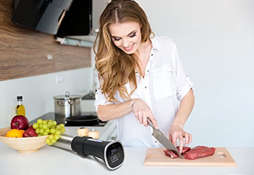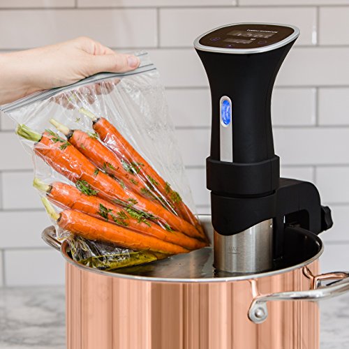 - HANDS FREE COOKING: Cooking can be time consuming. Our sous vide stick creates margin for you, shortening your active meal prep time. It only takes about 10 minutes to season, bag your food and prepare your sous vide set up. Then, just let it run. No need to babysit the cooking process, freeing up your time to work on a side dish or simply relax with family and friends. This technique makes just-in-time cooking predictable - perfect for dinner parties and week night meals alike.