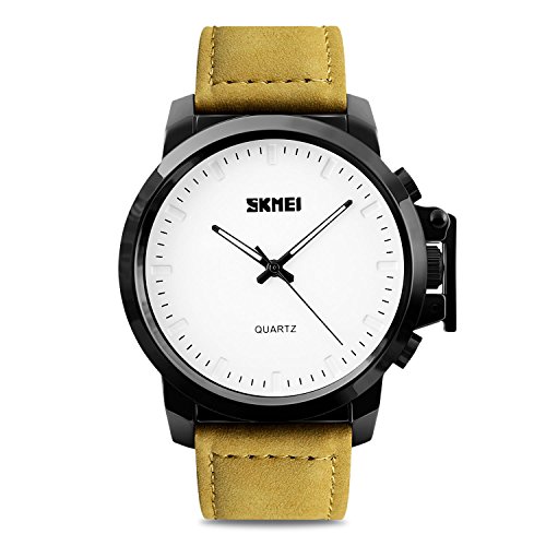 -. Title : Mens Watches, Dress Watch for Men Leather Band Analog Wristwatch Outdoor Sports Waterproof Stainless Steel Quartz Fashion Casual Business Design 98FT 30M Water Resistant Roman Numerals--White