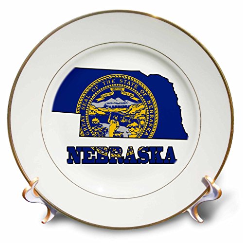 3dRose cp_58748_1 Nebraska State Flag in The Outline Map and Letters for Nebraska Porcelain Plate, 8-Inch