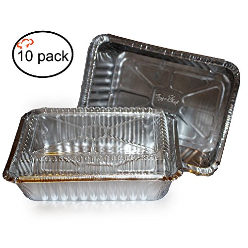 The TigerChef aluminum oblong container is disposable, has a removable cardboard lid, and can be used to hold and serve food. Aluminum foil containers hold in heat, serve as a moisture and oxygen barrier for freshness, and can be recycled. Unlike other aluminum foil pans, ours is made with heavy-duty aluminum for strength, ease-of-use, and re-use! Choose the size that fits your needs or order an assortment, to fit the most popular cooking needs. Bake your favorite dish, snap on a lid, and you can easily freeze or carry it along to share with friends and family. These pans are ideal for small Take-Out, Side Dishes, Pastries, and Food Service, and work great for hot or cold food.