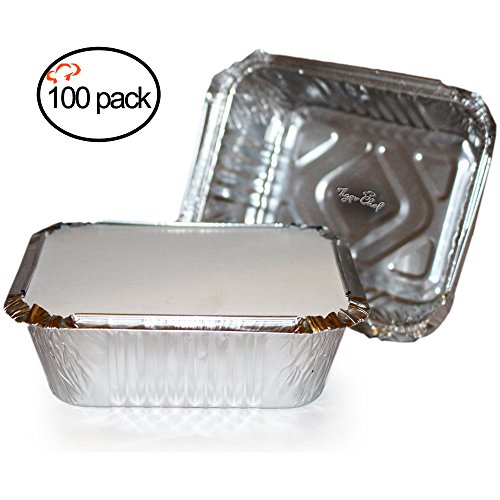 TigerChef Durable Aluminum Oblong Foil Pan Containers with Board Lids, 1-Pound Capacity, Aluminum Foil Take-Out Pans with Lids, 5.56 x 4.56 x 1.63 inch (100,1-Pound with Board Lid)