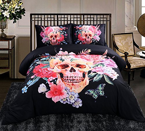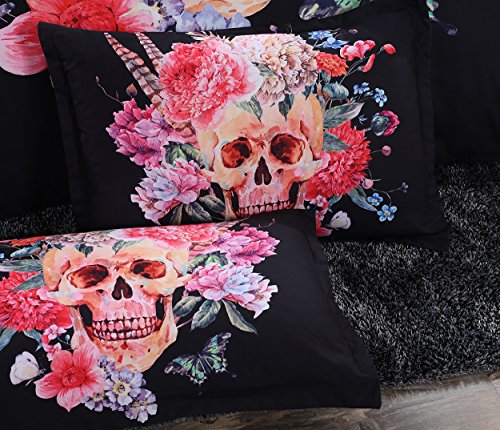 800 Thread Count Duvet Cover Sets Full Size, 3D Skull Bedding Sets Full Size,Skull Duvet Cover Sets for Teen Girls 4 Pieces,2 Pillowcases,1 Duvet/Quilt Cover,1 Flat Sheet,No Comforter (Full)