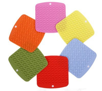-. Feature : ur soft silicone pot holder has a multi-functional design. The main function are silicone pot holders, silicone drying mat, and trivets mat. It also functions as a : large coaster, jar opener and spoon rest. / Our flexible & durable silicone hot pads/trivets is 6.9" x 6.9" , 100% food-grade and FDA approved silicone material. It will not stain, mold, mildew, or absorb odors. it is safe to use in the kitchen and it takes temperature from -40 to +500 degrees Fahrenheit. / Non-slip Grips ensures firm grip on holding hot pots, opening jars, and changing light bulbs. Unique Texture enables easy use as a garlic peeler, leaves no odor on your hands / Use it as a mat to protect your kitchen surfaces from scalding dishware or as a pot holder to grip hot pans safely. Large enough to be a trivet or coaster for teapots protect your table from the heat. / When it needs to be cleaned, simply hand-wash our silicone trivet or toss it into the dishwasher. Virtually everything washes off the nonstick surface with ease, even sticky foods and grease, no more dirty bacteria.