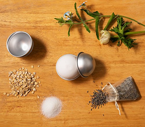 MAKE PROFESSIONAL QUALITY BATH BOMBS: Set includes 2 sturdy metal bath bomb molds so you can create with a friend (4 pieces total for 2 full spheres). Each mold has a diameter of 2.56 inches to create your own lush bath bombs.