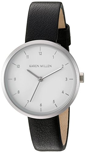 Karen Millen Women's Quartz Brass-Plated-Stainless-Steel and Leather Dress Watch, Color:Black (Model: KM135B)
