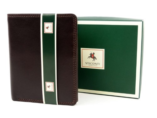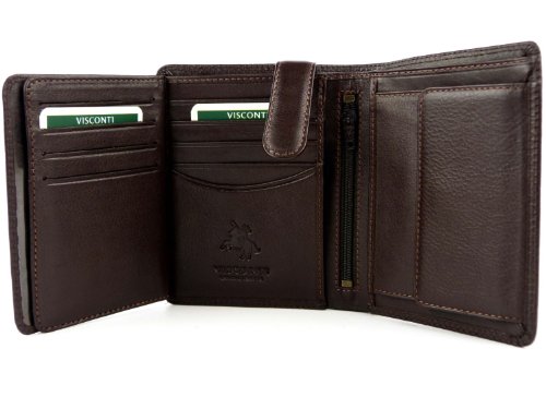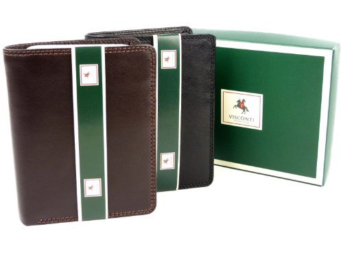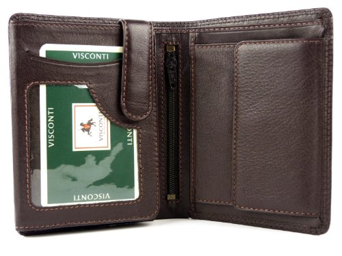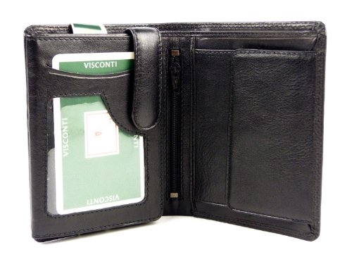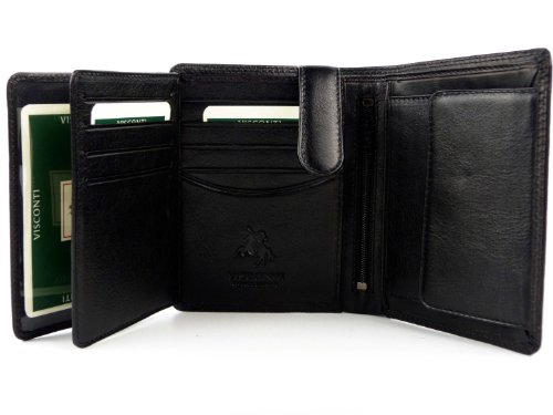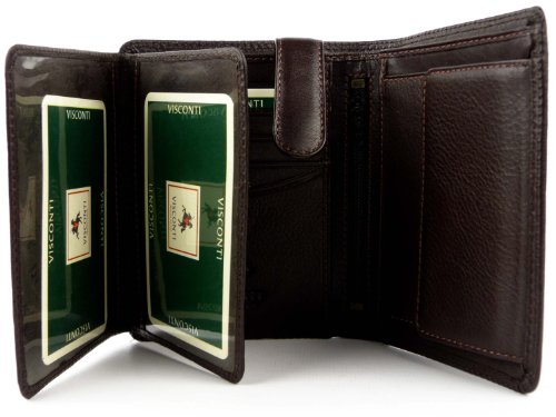 -. Feature : A thin soft wallet from the popular Visconti collection / Holds 9 Credit Cards + 3 ID Windows + Coin purse / Quad-folds wallets snaps into bifold size / Double stitching & gift boxed
