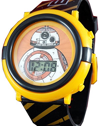 -. Binding : Watch -. Brand : Disney -. Color : Black -. Department : Unisex-child -. EAN : 0030506418405 -. Feature : BB8 Large logo on face perfect for any Star Wars fan / Lights Up in blue with the press of a button / BB8 Graphics running through the entire band / Clear and easy digital time perfect for any young child / Band adjusts perfectly to your child's wrist with multiple holes and a buckle clasp -. Label : Accutime -. Manufacturer : Accutime -. Model : 00-LYBV33-FR -. MPN : SWM3005 -. PackageQuantity : 1 -. PartNumber : SWM3005 -. ProductGroup : Watch -. ProductTypeName : WATCH -. Publisher : Accutime -. Studio : Accutime -. Title : Star Wars Kid's BB8 Digital Light Up Watch SWM3005 -. UPC : 030506418405