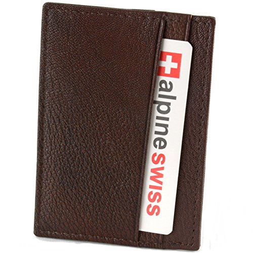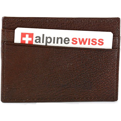 -. Binding : Apparel -. Brand : Alpine Swiss -. Department : mens -. Feature : Thinnest wallet in the market: Measures: 3 15/16" L x 2 13/16" H x 1/8" D (Yes only 1/8th of an inch thin) / Features 2 card slots on either size and a top middle opening where you can place 1-3 cards or fold bills into. / Sub Compact Front Pocket Wallet / Perfect for a night out tucked away almost invisibly in your pocket / Professional Great for Business Cards or a Small Wallet -. Label : alpine swiss -. Manufacturer : alpine swiss -. Model : By Alpine Swiss -. MPN : SW040P -. PackageQuantity : 1 -. PartNumber : SW040P -. ProductGroup : Apparel -. ProductTypeName : ACCESSORY -. Publisher : alpine swiss -. Studio : alpine swiss -. Title : AlpineSwiss Leather Card Case Wallet Slim Super Thin 5 Card Slots Front Pocket