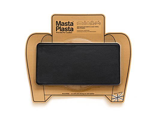 MASTAPLASTA peel and stick repair patch for holes, rips and stains in car seats, sofas, bags and leather jackets. 8 inches by 4 inches PLAIN STRIP DESIGN/BLACK
