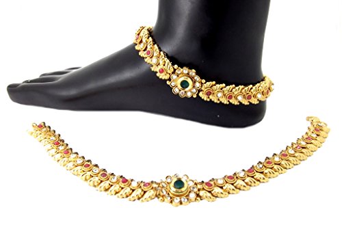 -. Feature : Bridal Collection Polki Copper Gold Plated Anklet Payal. / Fashion jewellery to adorn all feet.Goes well with all bridal wear dressings, sarees, lehenga choli etc. / Total Length: 25 cm x 1.5 cm / Condition: New never worn / Contents: 1 Pair Anklet