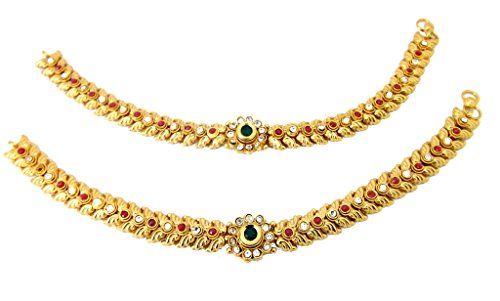 -. Title : 9blings Bridal Collection Polki Copper Gold Plated Anklet Payal For Women