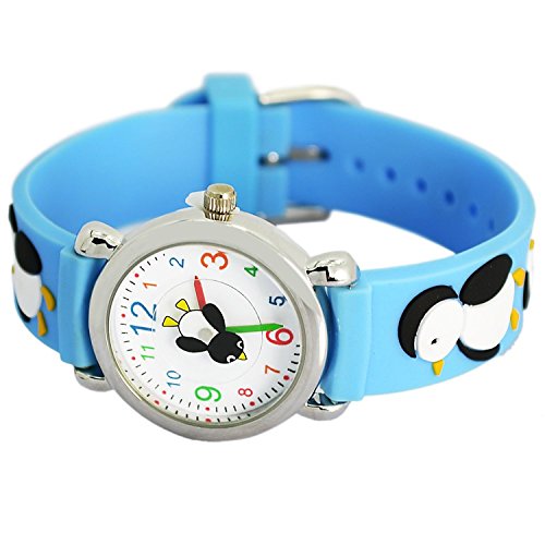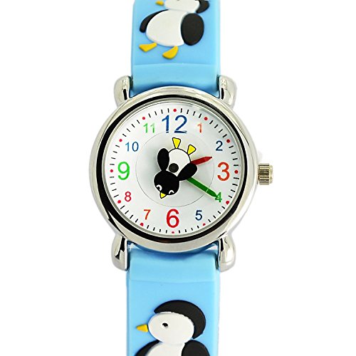Jewtme Blue Silicone Environmentally Friendly Materials Penguin Dial Children Cartoon Watch Kids Watch