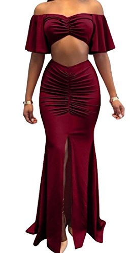 -. Title : Nicellyer 女性のプリーツのチューブトップ2枚のサイドスリット固体クラブドレス