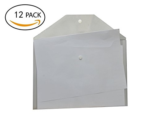 A4 Premium 12Piece Poly Envelope with Velcro Snap Button- A4 Size PP Plastic folder (Translucent White)