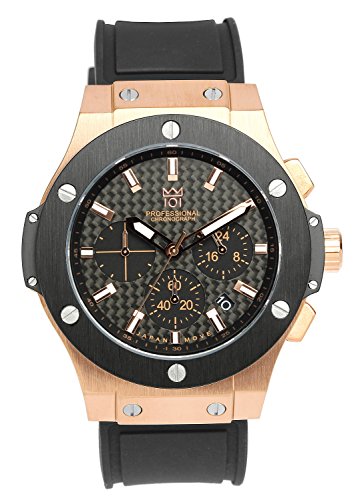 원본상품명: [HYAKUICHI 101] 腕時計 ウォッチ 100m防水 クロノグラフ 日付表示 ラバ?ベルト ブラック×ピンクゴ?ルド メンズ
