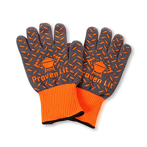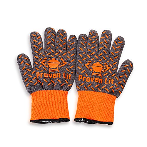 Proven Lit Heat Resistant Gloves (PAIR) | BBQ gloves with Extra Grip and Extended Wrist Protection Grill Gloves | Use for Grilling, BBQ, Fire Pit, Cooking or pot holder | American Branded Oven Gloves