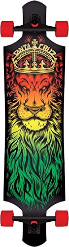 -. Brand : Santa Cruz -. Feature : Santa Cruz Metallic Ink Drop Down Longboard Deck 10" x 40" / 75mm 78a Road Rider Wheels / Road Rider 180 Trucks / Santa Cruz Bearings / Santa Cruz Hardware & Black Santa Cruz Grip Tape with Rasta Stripe -. Label : Santa Cruz -. Manufacturer : Santa Cruz -. Model : DECK -. MPN : SC308---- -. PackageQuantity : 1 -. PartNumber : SC308---- -. ProductGroup : Sports -. ProductTypeName : OUTDOOR_RECREATION_PRODUCT -. Publisher : Santa Cruz -. Studio : Santa Cruz -. Title : Santa Cruz Lion God Rasta Drop Thru Cruzer Freeride Longboard Deck Complete 40"