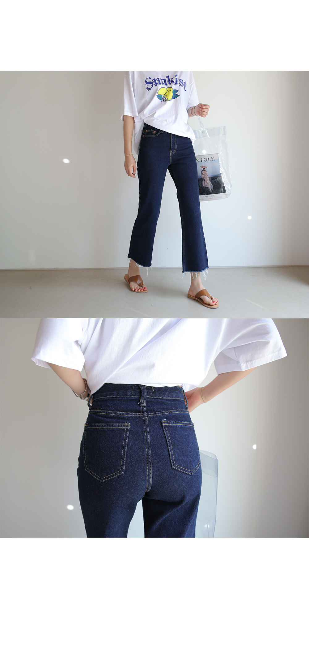 피팅 컬러와 사이즈는 진청, S 입니다
