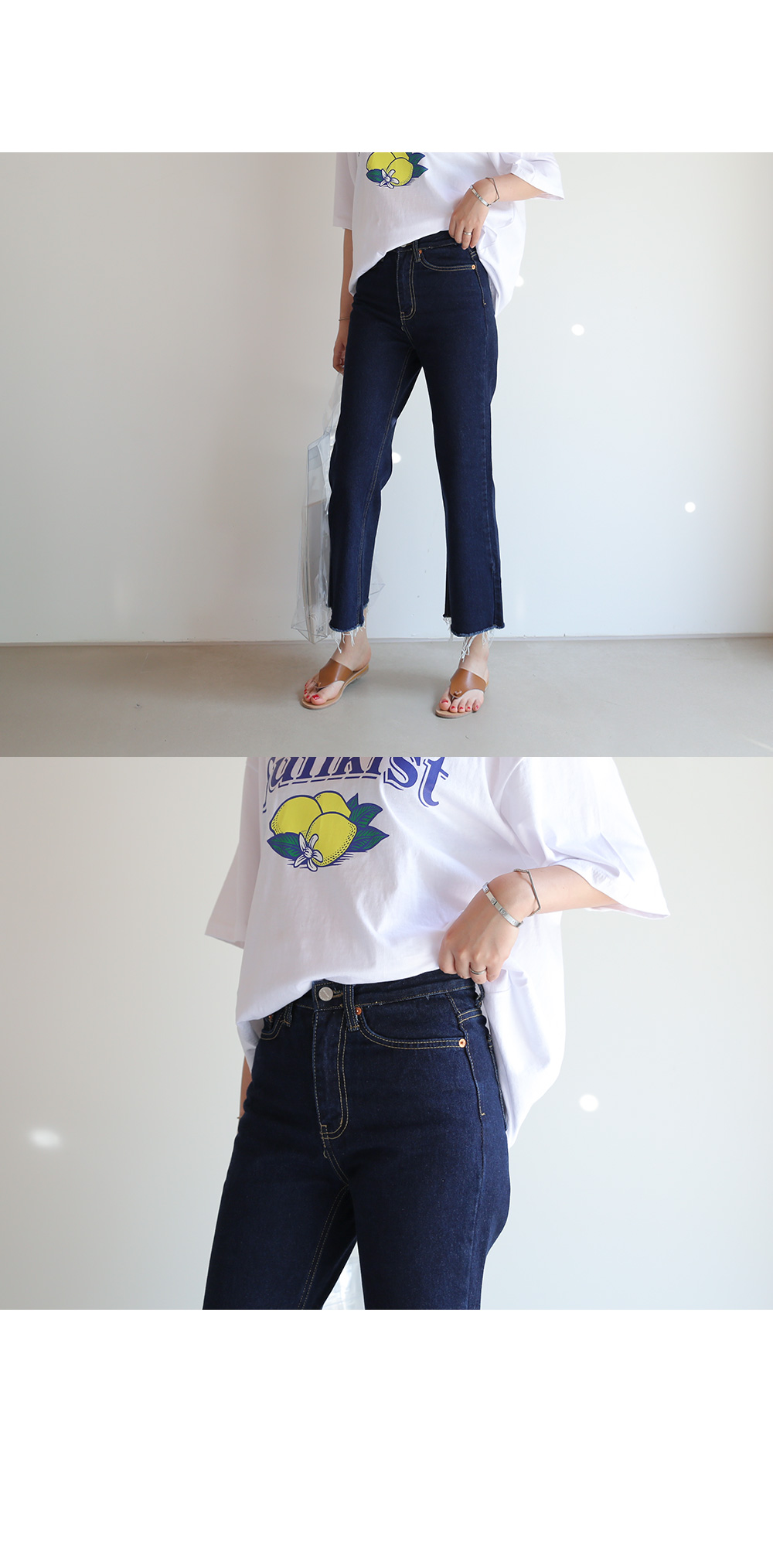 전체적으로 살짝 와이드한 부츠컷핏으로