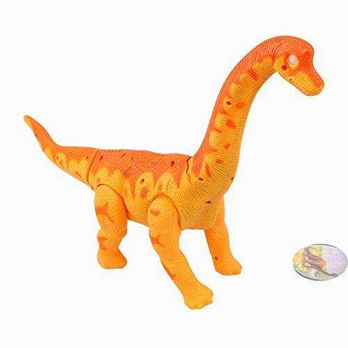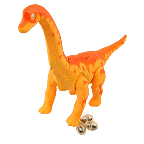 Sun Cling Electronic Toys Walking Brachiosaurus Dinosaur Brachiosaurus Walking Dinosaur makes awesome dinosaur noises and has a fun image projector that projects a hologram type image and lays eggs! Fun for all ages, requiring 3 AA batteries(not included), kids will be enthused to receive this as a gift for any occasion!