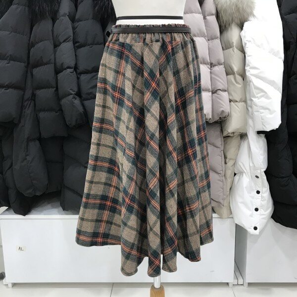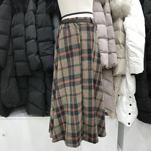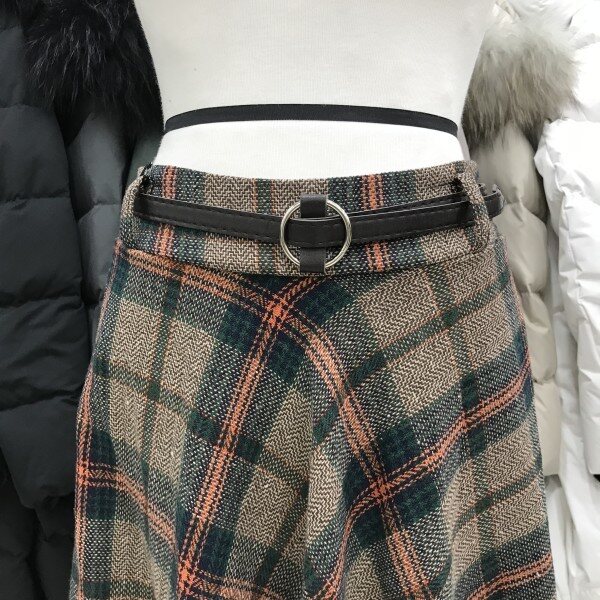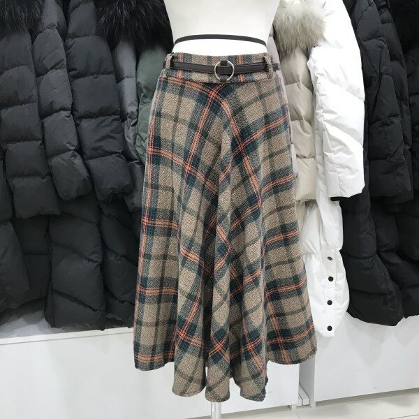 A라인 뒤밴딩 체크 스커트입니다허리벨트 포인트와 체크 배색으로 클래식하면서 여성스럽게 연출되는 스커트랍니다적당한 기장감과 도톰한 원단감으로 겨울에 입기에 좋답니다뒤 밴딩으로 55,66 사이즈 모두 입기 좋답니다사이즈 FREE총장 69cm