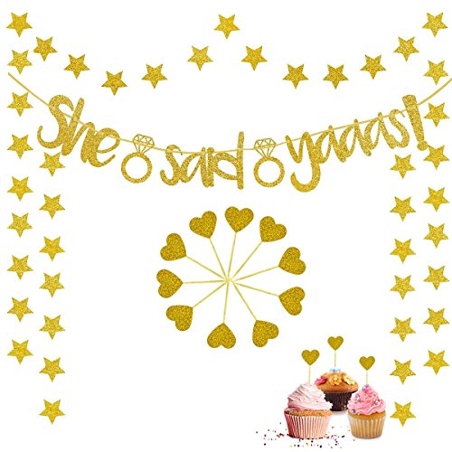 Studio : OWEV Publisher : OWEV Binding : Health and Beauty Product Description Features : You can try hanging the ""she said yaaas""banner over the gift table or wall backdrop.Our banners willMake your party unique. Our heart-shaped cake inserted cards can be decorated with cupcakes and party cakes. Package included: 1*She Said Yaaas Banner,1* glitter star banner ,10* heart-shaped cake inserted cards.