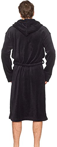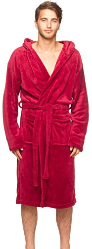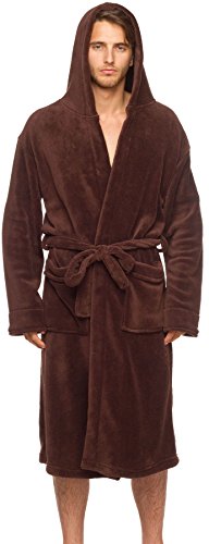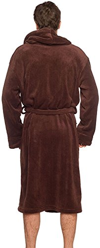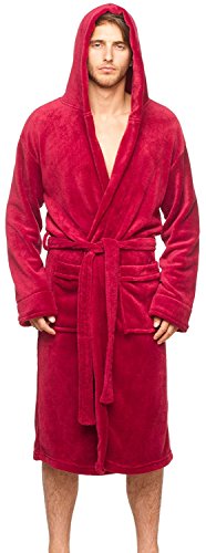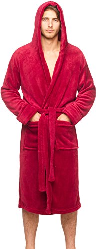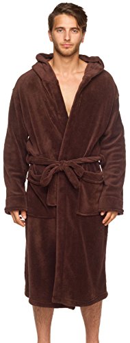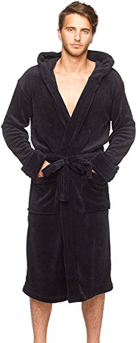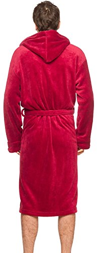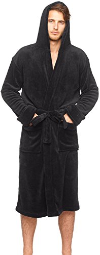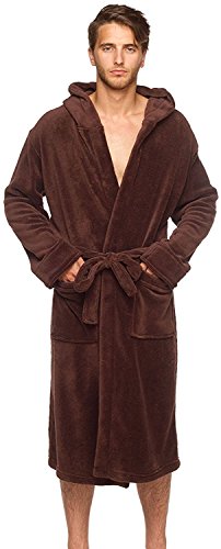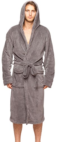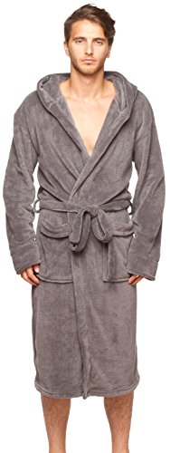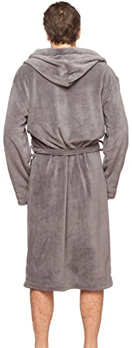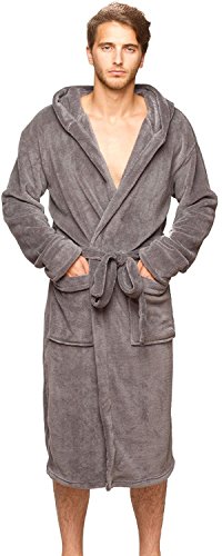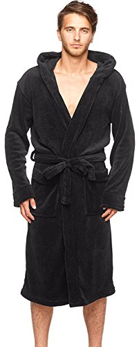 | Wanted Mens Bathrobe with Hood Plush Micro Fleece with Front Pockets |