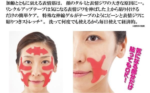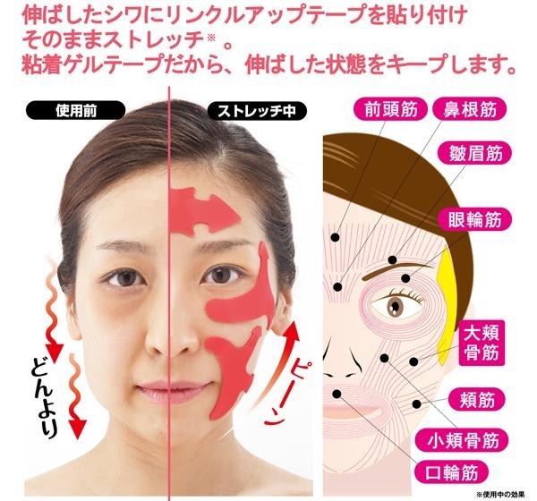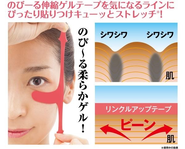 リンクルアップテープは気になる表情ジワを伸ばした上から貼り付けるだけの簡単ケア。 |