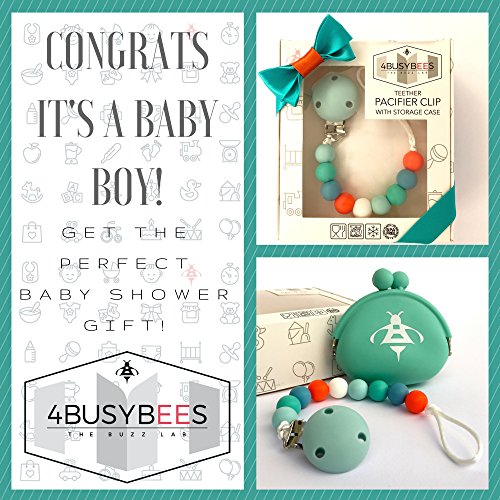 -. Feature : ✅PAIN RELIEF EFFICIENCY: The softness of the silicone beads of the pacifier clip for boys is pleasant to the baby and relieves the teething pain. For optimal pain relief effect, put the teether soother holder in the FREEZER for a few minutes inside its case. / ✅TRAVEL CASE INCLUDED: The baby teething pacifier clip from 4BUSYBEES comes with a storage case to keep the pacifier always available and clean. / ✅OPTIMAL DESIGN: Designed to be long enough for baby to move around without being hampered by the length of the leash and yet small enough to keep the pacifier out of the floor. The string is 25cm long. The closing clip is very strong, and baby cannot remove it by himself. / ✅THE PERFECT BABY GIFT: Packed inside a fine box, the pacifier clip it's the perfect baby boy gift for you or your family and friends, baby's celebrations. Check out the other 4BUSYBEES great baby products for more ideas. / ✅GUARANTEED: When you purchase 4BUSYBEES teething pacifier clip you are protected by a 30 days' item return, no-questions-asked, MONEY BACK GUARANTEE!