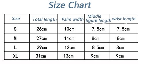 Binding : Apparel Product Description Measurement Method: Total length: measure the length from the top of middle finger to the bottom of gloves. Palm Width: measure the length of palm under the knuckle exclude thumb finger. Middle Finger Length: measure from the top of middle finger to the bottom. We examine each products strictly to make sure high quality. If there is anything we can help you, please feel free to contact us at any time and we will continually provide full support. Please rest assured that we will value every customer highly and we will do our utmost to serve you. Note: Please allow 1-2cm deviations due to manual measurement and Color may slightly vary from the picture owing to lighting effects and monitor setting Hint for choosing a proper size. The measurements above are planar measurements, please use your similar one to compare with it. 0