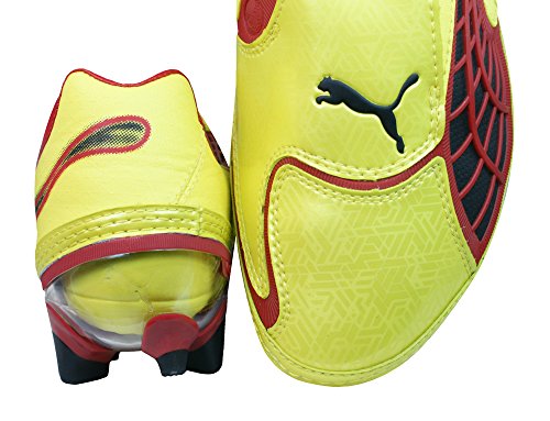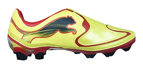Binding : Apparel Product Description Puma v1.10 Wide i FG Mens Football Boots / Cleats - The 3rd Generation of the v1 series, the v1.10 - A fusion of speed and low weight. The v1.10 has an updated, softer toe area designed to give a better touch of the ball. One of the new designs for the v1.10 is the introduction of the lace cover to provide a clean kicking area and greater ball to contact area. The fit of the boot has been greatly improved to help give a more comfortable and higher quality fit. The upper is made up of a New, lightweight material mix, combining textile with a soft, highlighy abrasion-resistant microfiber. The introduction of a carbon fibre plate over the forefoot reduces stud pressure whilst the moulded blades ensure optimum traction across firm natural surfaces. Boot bag included 0