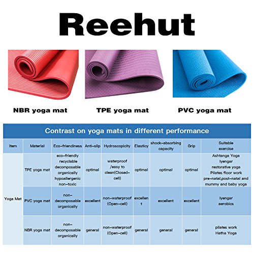 Reehut 1/4-Inch High Density TPE Exercise Yoga Mat for Pilates, Fitness & Workout with Velcro Strap