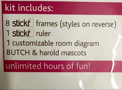 Studio : Butch and Harold Publisher : Butch and Harold Binding : Kitchen Product Description Stickr (frame) offers the newest way to display photos. Just stick your photo to the back of the sticker picture frame and apply to any surface. Won't damage walls or photos. Stickr (frame) comes in a pack with 8 frames: (1) 8 by 10, (2) 5 by 7, (4) 4 by 6, (1) 4 by 4. Also included are 1 stickr ruler, 1 customizable room diagram and BUTCH and Harold mascot stickers. Now in Brown. 0