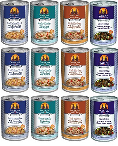Contains 3 of each can - Steak Frites, Funky Chunky, Bed & Breakfast, and Wok the Dog. Weruva was founded over ten year's ago and is still wholly owned and operated by pet parents David & Stacie Forman. We only produce our products in BRC/USDA Approved Facilities and source responsible and sustainable raw materials. You will be happy to know Weruva uses Cage-Free Chickens, Grass-Fed Beef & Lamb, and Wild-Caught Fish. Weruva Classic Dog can line features limited ingredients with a basic and simple focus using the highest-quality cuts of meat. This entire line is carnivore focused with high protein and low carbs. What is Wok The Dog? Your dog will be struttin' its full belly after dining on this feast of boneless, skinless, white breast meat chicken mixed with shredded beef, pumpkin, carrot and sweet potato. One meal your dog won't be "too sexy for" :-). Made with class and sass free of added antibiotics and hormones and also cage free. Awesome Happy, Awesome Healthy. We hope your furry friends love Weruva as much as our own pets!Feature
