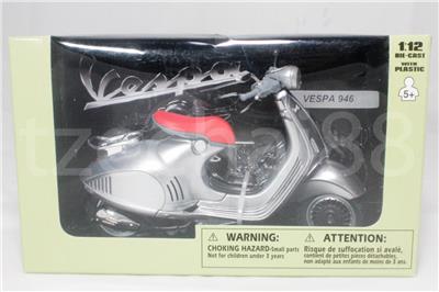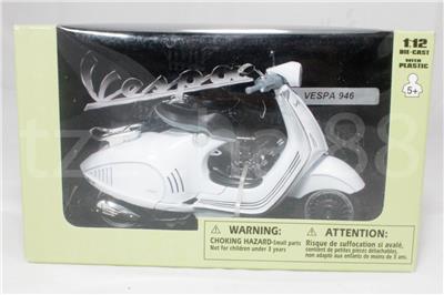 NewRay 1:12 Die-cast Vespa 946 Scooter Motorcycle White / Silver / Black Color Model Collection Christmas New Gift