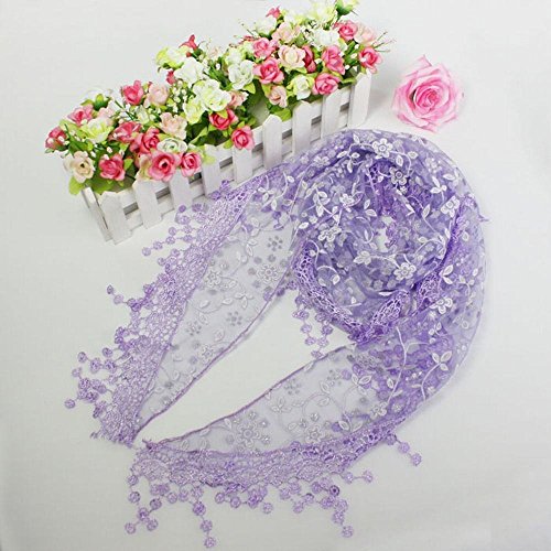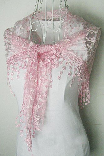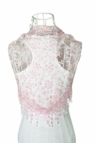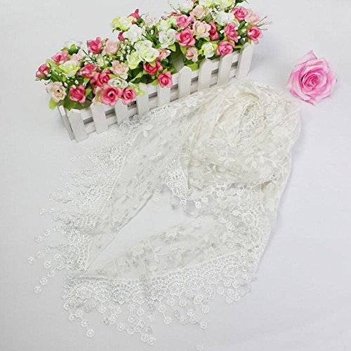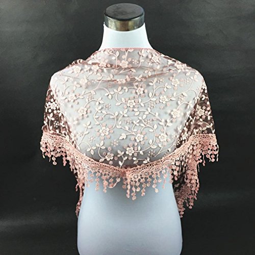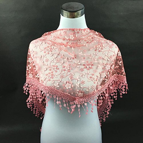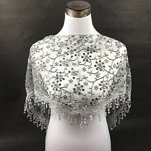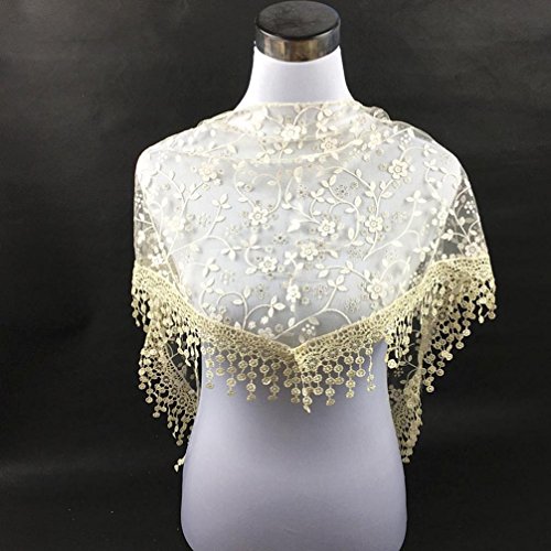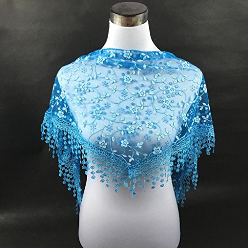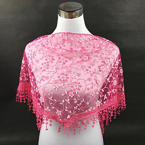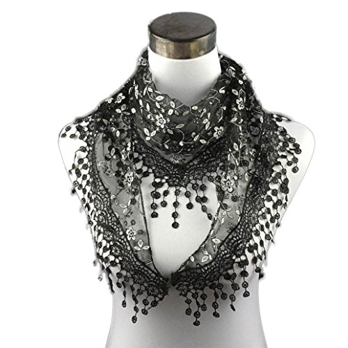 | Bolayu Fashion Lace Tassel Sheer Burntout Floral Print Triangle Mantilla Scarf Shawl |