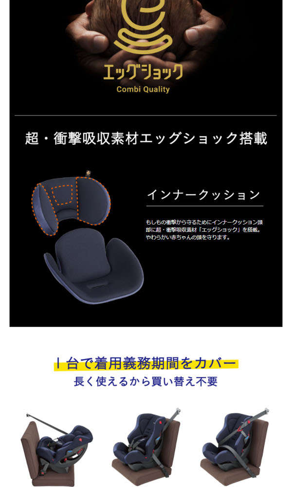 ●新生児から7才頃までず~っと使えるエッグショックを搭載したロングユースチャイルドシート