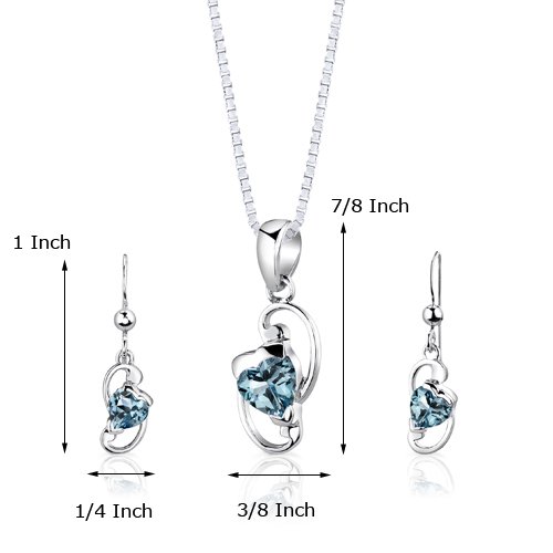-. Title : Swiss Blue Topaz Pendant Earrings Necklace Set Sterling Silver Heart Shape 2.25 Carats