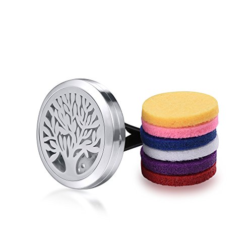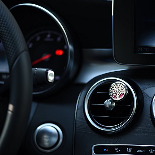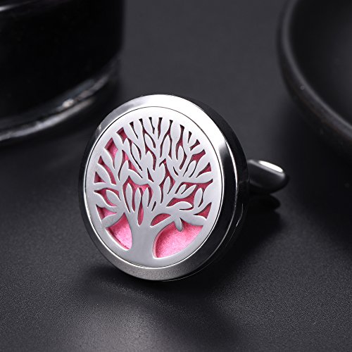 Bandmax Car Air Freshener Perfume Essential Oil Diffuser,Stainless Steel Tree of Life Locket with Vent Clip For Aromatherapy with 8 Free Cotton Colorful Refill...