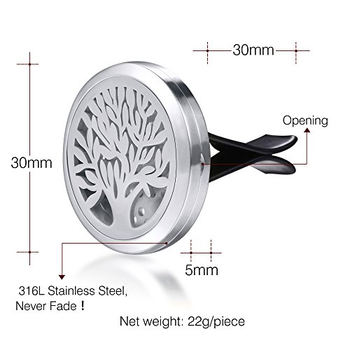 - High Quality: Superior quality 316L surgical stainless steel with vent clip-on using in the car while long travel, the essential oil diffuser will not fade,out of shape,bright and tough enough.