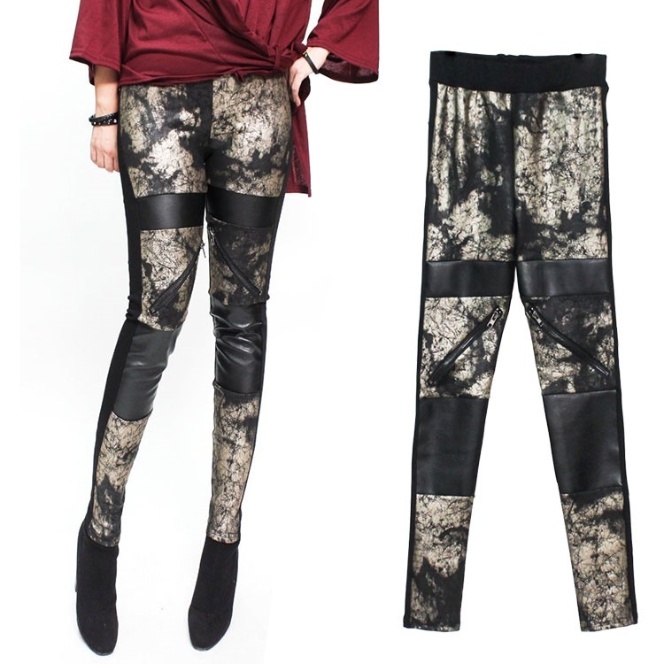 フェイクレザーの切り替えのスキニーパンツです。