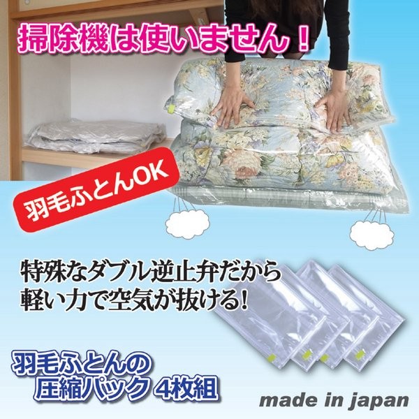 【商品名】掃除機不要!羽毛布団の圧縮パック 4枚セット